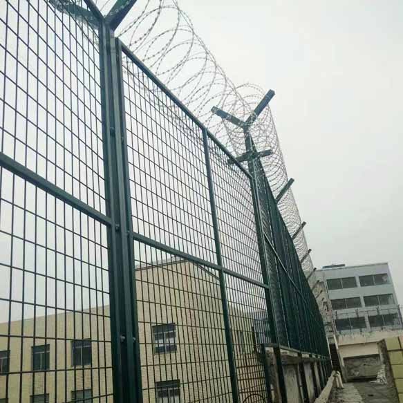 監(jiān)獄護(hù)欄網(wǎng)又稱作“Y型安全防御護(hù)網(wǎng)”監(jiān)獄鋼網(wǎng)墻,是由V型支架立柱,加強(qiáng)型焊接片網(wǎng),安全防盜連接件和熱鍍鋅刀片刺籠組成強(qiáng)度和安全防御性級別很高,近年來,被廣泛應(yīng)用在監(jiān)獄,機(jī)場,軍事基地等高安全場所。