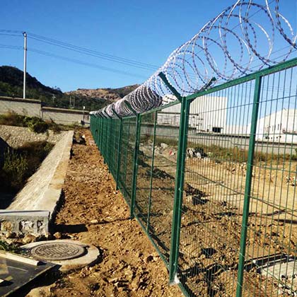監(jiān)獄防攀爬網(wǎng)又稱Y型安全防御護網(wǎng),用V型支架立拄,加強型焊接片網(wǎng),安全防盜連接件和熱鍍鋅刀片刺籠組成強度和安全防御性級別很高.近