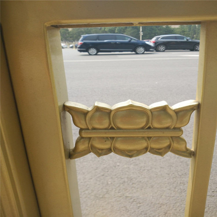 黃金護(hù)欄當(dāng)中不可少的為蓮花件,無論是什么樣的黃金護(hù)欄蓮花件基本上是必不可少的,只要有蓮花件的存在,人們會(huì)普遍想到黃建護(hù)欄,蓮花件的材質(zhì)分為沖壓件和鑄鐵件。對(duì)比之下沖壓件除了價(jià)格便宜,別的都沒有鑄鐵件好。蓮花鑄鐵件外形圓滑、飽滿。在護(hù)欄上面上特別有立體感。黃金護(hù)欄中最上面或是最下面也有添加祥云的,其材質(zhì)同蓮花件一樣,分為沖壓和鑄鐵的。