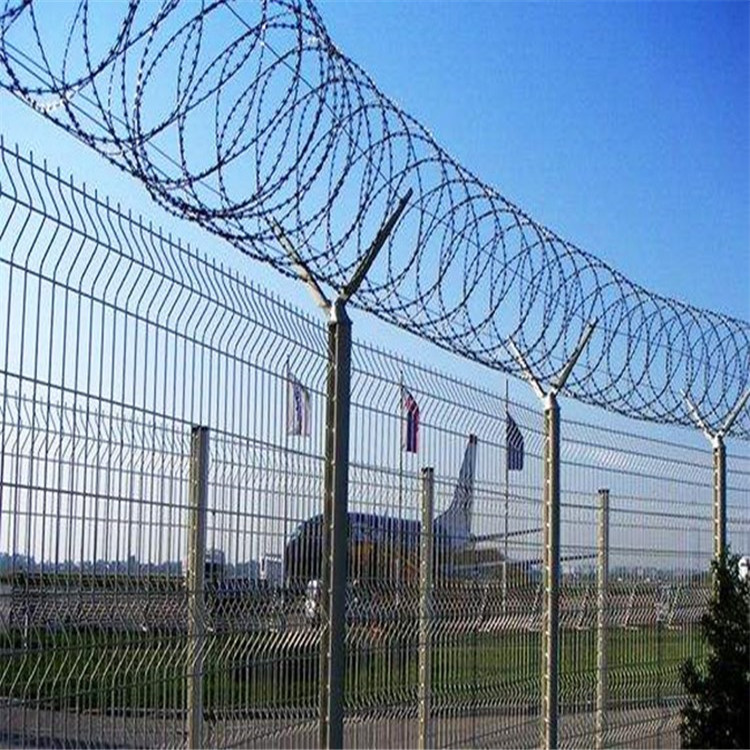 飛機圍界是做什么的?飛機圍界是機場邊界的重要保護措施,是為防止人為破壞,保證機場安全,讓飛機順利起飛的護欄產(chǎn)品,這種護欄網(wǎng)表面采用電鍍、熱鍍、浸塑、噴塑等處理方式,實現(xiàn)顏色多樣多化,在連接方式上采用特制SBS緊扣件,防止人為破壞拆卸,又在網(wǎng)片上加裝橫向四道折彎回強筋,使整體既美觀又實用。,機場圍界根據(jù)結(jié)構(gòu)分類,可以分為菱形網(wǎng)圍界和方孔鋼筋網(wǎng)圍界,區(qū)別就是二者的生產(chǎn)工藝不同,一種是用勾花網(wǎng)用作網(wǎng)板或斜方孔網(wǎng)片用作網(wǎng)板,另外一種是用鋼筋網(wǎng)片或電焊網(wǎng)片用作網(wǎng)板來制作機場圍界
