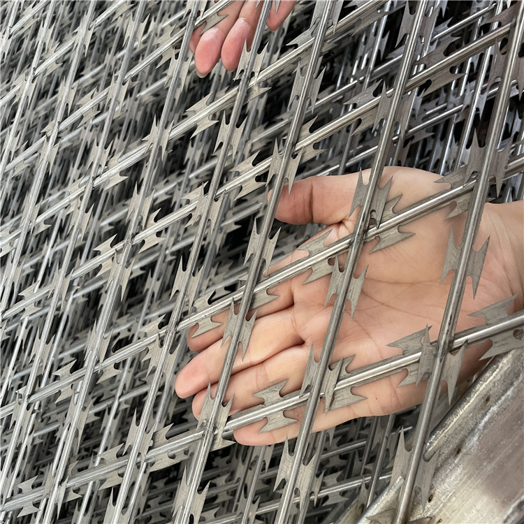 刀片刺網(wǎng)是用直條的刀片刺繩直接焊接而成的網(wǎng)片,焊接成網(wǎng)片的刀片刺網(wǎng)擁有了小孔且不可攀爬的優(yōu)點,同時在防護高度上改善了傳統(tǒng)的螺旋形刀片刺繩,焊接成片刺網(wǎng)尺寸可高達2米,長度不限,現(xiàn)在大部分監(jiān)獄,看守所,派出所,機場,重要廠區(qū)等改進了原來的防護形式,越來越多的開始采用焊接式刀片刺網(wǎng)。