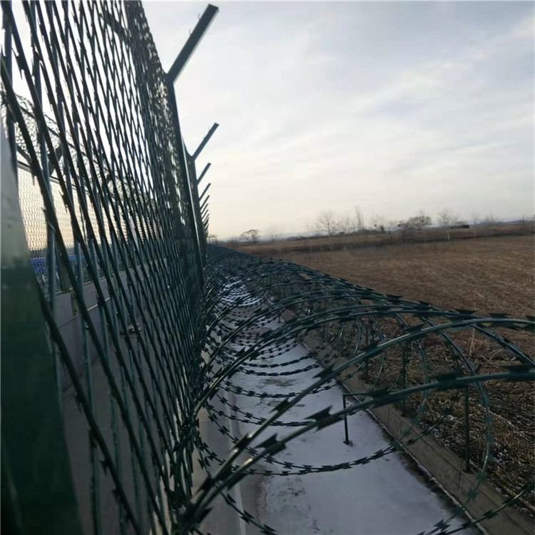 1. 高度安全性:刀片鋼網(wǎng)墻的鋒利刀片和堅固鋼網(wǎng)能夠有效地阻止犯人攀爬、破壞,從而大大提高了監(jiān)獄的安全性。
