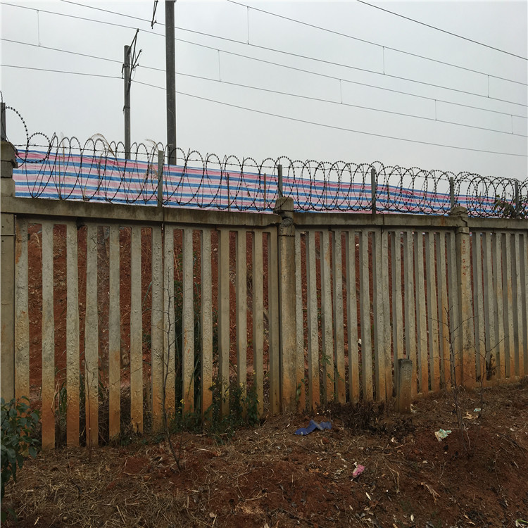 2、高鐵刺絲滾籠安裝前提是,鐵路線路的水泥防護柵欄安裝完畢時即可開始安裝高鐵刺絲滾籠,一般在水泥防護柵欄的基礎(chǔ)上加高0.5米的高鐵刺絲滾籠以增強防護能力。一般刺絲滾籠先安裝支架和加密支架后開始縱向拉筋和刺絲滾籠的安裝。安裝時需帶防割手套以防止手被割傷。