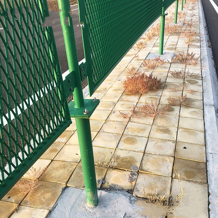 高速公路隔離柵采用鋼板網(wǎng)為主體,附以邊框以加強其整體性能并便于安裝,達(dá)到快速組裝的安裝目的。用的這個鋼板網(wǎng)就是防炫目網(wǎng),也就是平時說的防拋網(wǎng)、金屬板網(wǎng)、鋼板拉伸網(wǎng)、金屬擴張網(wǎng)、鐵板網(wǎng)等。它的制作過程簡單的來說是金屬板經(jīng)由沖剪機裁剪沖壓,形成網(wǎng)狀的張料物體,由于這種鋼板網(wǎng)的獨特構(gòu)造,能夠改變光線直射過來的方向,使車輛和燈光一部分被阻擋,一部分被改變方向,只有少數(shù)部分被傳遞到人的眼睛里,起到了防止眼睛眼暈的作用。這樣既可以隔離上下行車道,又能有效的保障防眩設(shè)施的連續(xù)性和橫向通視,達(dá)到防眩、隔離雙重目的,是一種非常合理的高速公路護(hù)欄網(wǎng)產(chǎn)品。